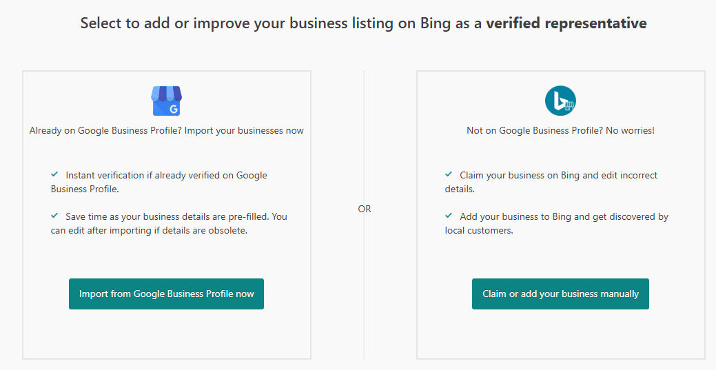 - Choose how to start your business listing. You can either choose to “Import from Google Business Profile Now,” or to “Claim or Add Your Business Manually.” Importing from Google Business Profile will be quicker and helps ensure consistency across multiple listing directories. But if you don’t have a Google Business Profile yet, continue to the next step, which is to add your business details manually.