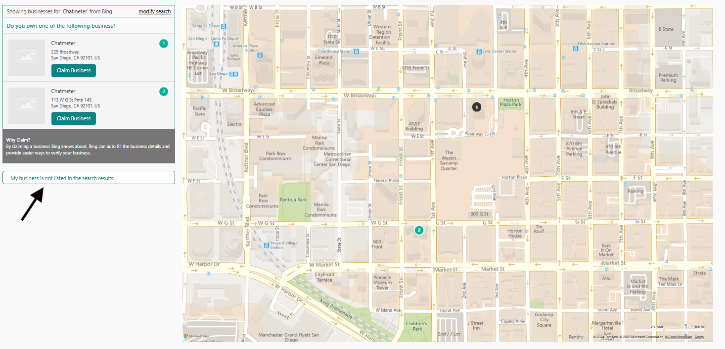 Note: You can also do this by going to Bing Maps, searching for your business, and then clicking on “Claim now.”