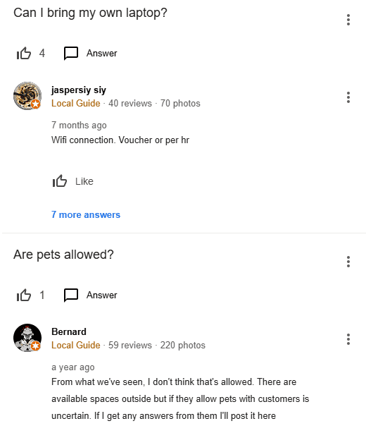 The Q&A section on your GBP allows potential customers to ask questions about your business directly in search results. Once those questions are asked, you or other customers are free to answer those questions.